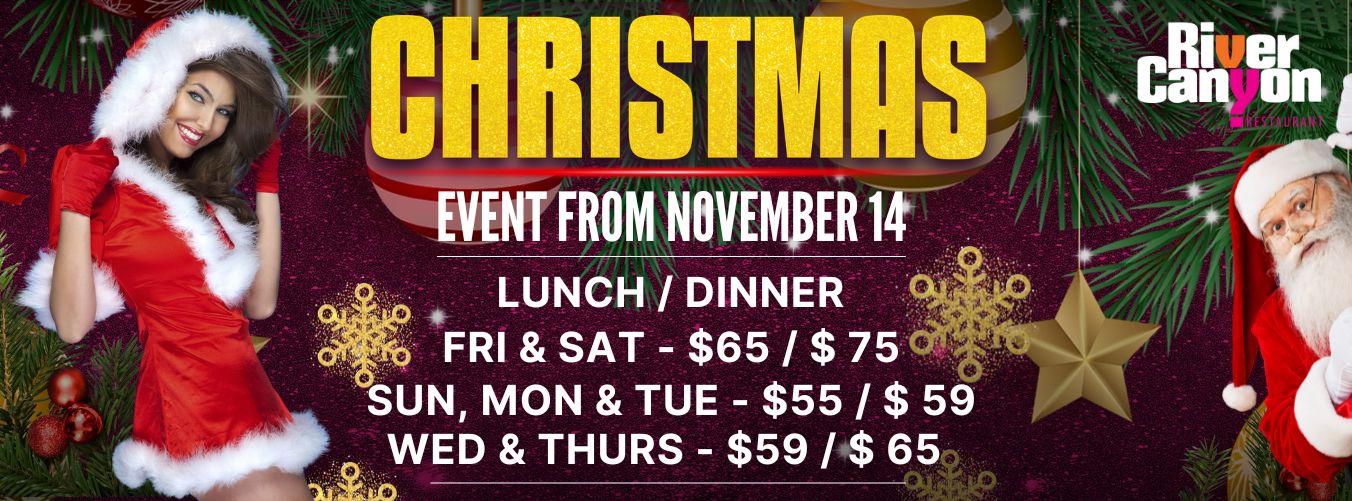 At River Canyon, we believe Christmas is about joy, togetherness, and delicious food. Thatβs why weβve created special Christmas lunch and dinner packages designed to make your celebrations truly memorable. Enjoy a vibrant atmosphere with sparkling decorations, festive music, and a welcoming vibe that sets the mood for the holiday season.